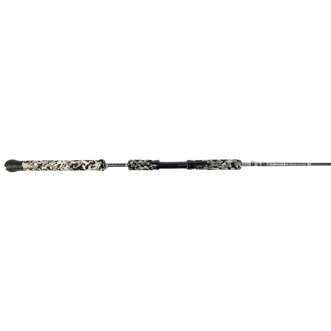 The Carbon X Slow Pitch rod series brings together advanced materials and precision craftsmanship to give anglers the ultimate tool for slow pitch jigging. With a sleek camo Trim Package, these rods are as visually striking as they are powerful, offering the perfect balance of strength, sensitivity, and durability.