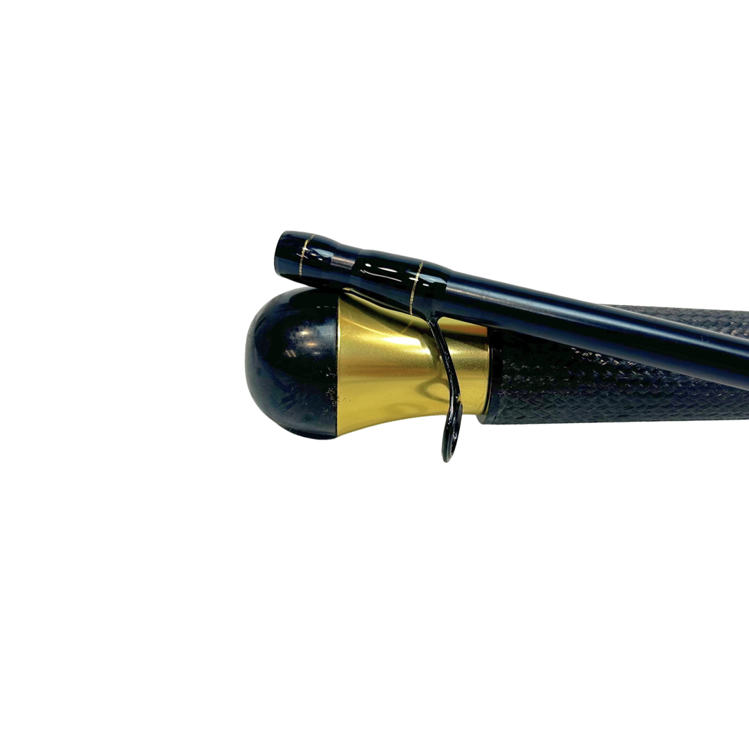 The design is all about clean power and elegance. With jet black wraps, sleek dark components, and gold accent threading throughout, this rod lives up to its name. A gold aluminum butt cap adds flash without overdoing it, and the custom dragon decal wrapped near the label seals the deal with a touch of fierce personality.