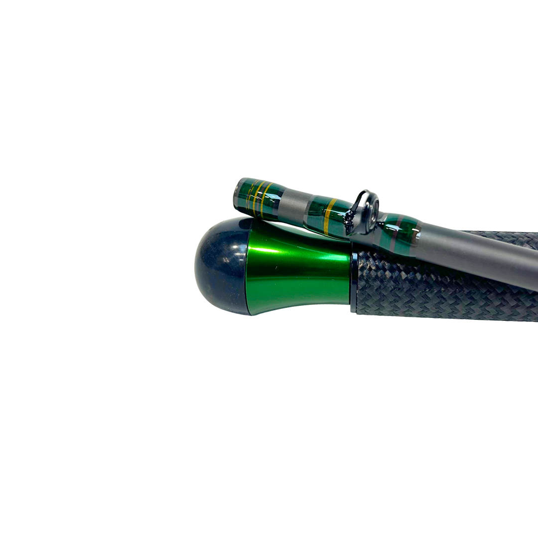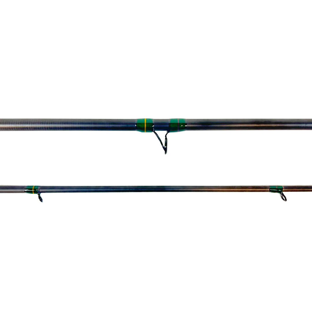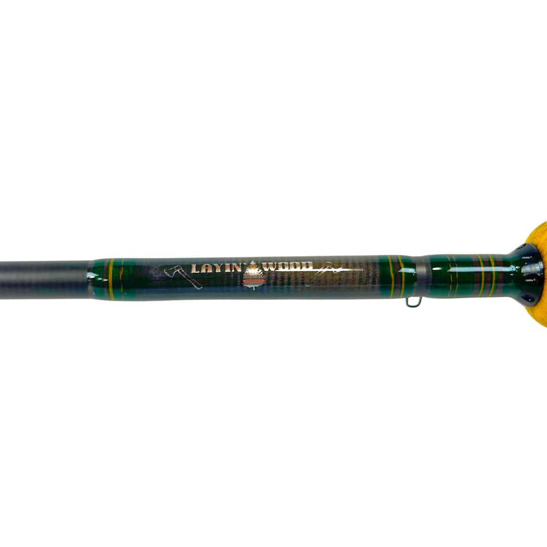 Introducing “Layin’ Wood” — a Takedown 10'6" Northwest-style rod that blends craftsmanship with raw attitude. Built with a medium power rating, moderate action, and suited for 10–20 lb line, this rod delivers both finesse and strength whether you’re trolling in the Columbia for salmon or going toe-to-fin in the salt. The handle features a natural wood-look grip that gives it a rugged, outdoorsman vibe, but the real standout is in the details. Our rod builder Porter designed this rod using a brand-new wrap technique with a spiral thread inlay, adding a unique visual twist and elevated style. With green and yellow accents throughout, "Layin' Wood" is as bold in performance as it is in personality. GET READY TO LAY SOME WOOD!