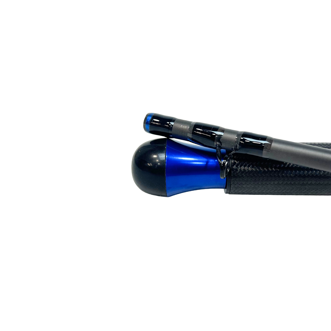 Finished with clean cobalt blue trim wraps, the rod keeps a sleek, stealthy appearance while maintaining a professional, no-nonsense look on the water. Its takedown design offers ease of transport without compromising strength or feel, making it a dependable companion for boat deck setups.