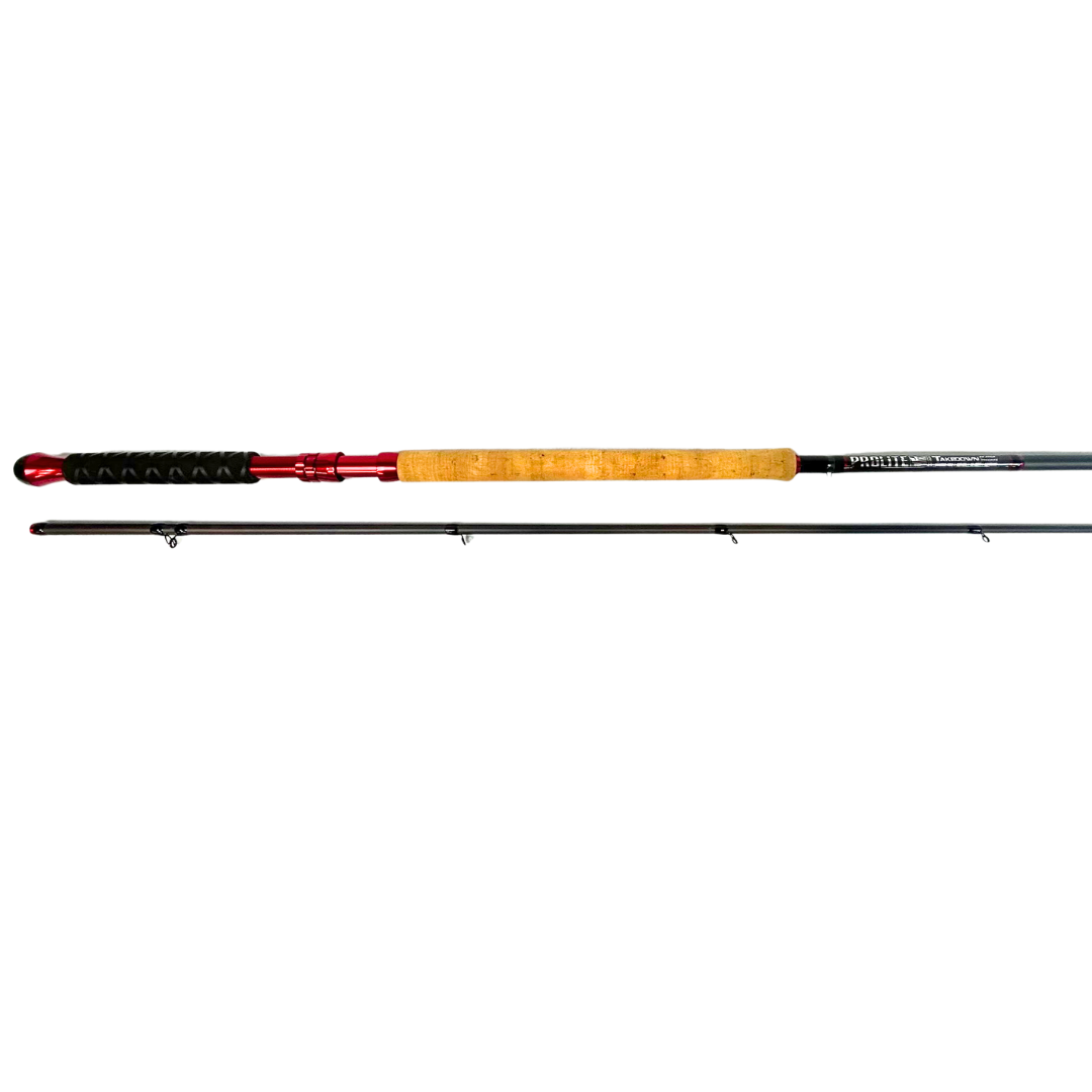 This Takedown NW Style rod is purpose-built for anglers who need both power and finesse when targeting hard-fighting fish in demanding water. At 12 feet, it offers extended reach for precise control and deep sweeping hooksets, while its heavy power and moderate action combine to deliver the backbone needed to muscle fish out of fast current, without sacrificing the flex that keeps them pinned during the fight. Optimally rated for 12–30 lb line, this rod is a workhorse in the hands of those who fish with intention. Outfitted with a bold red anodized aluminum seat, a classic cork foregrip, and a rubberized rear grip for control and comfort, it’s built to perform wherever the bite takes you.